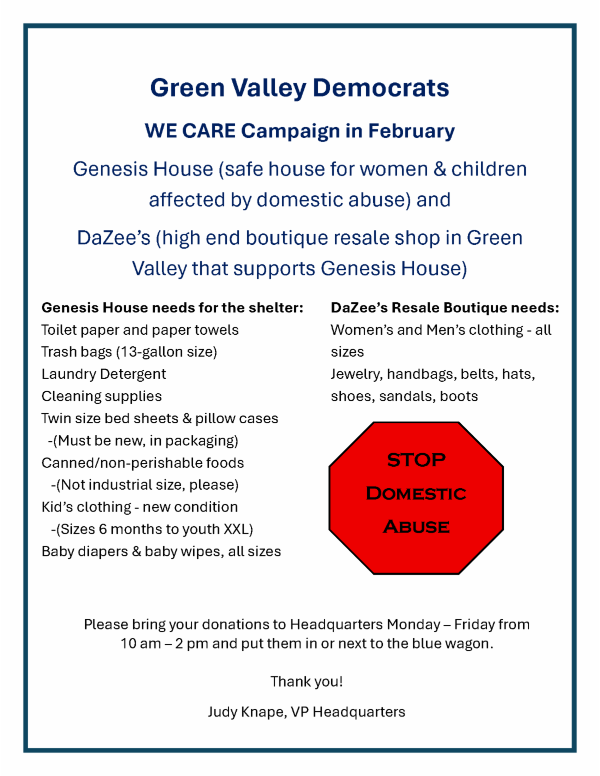 Bring donations of non-perishable food items for the Sahuarita Food Bank to all rallies. Thank you!